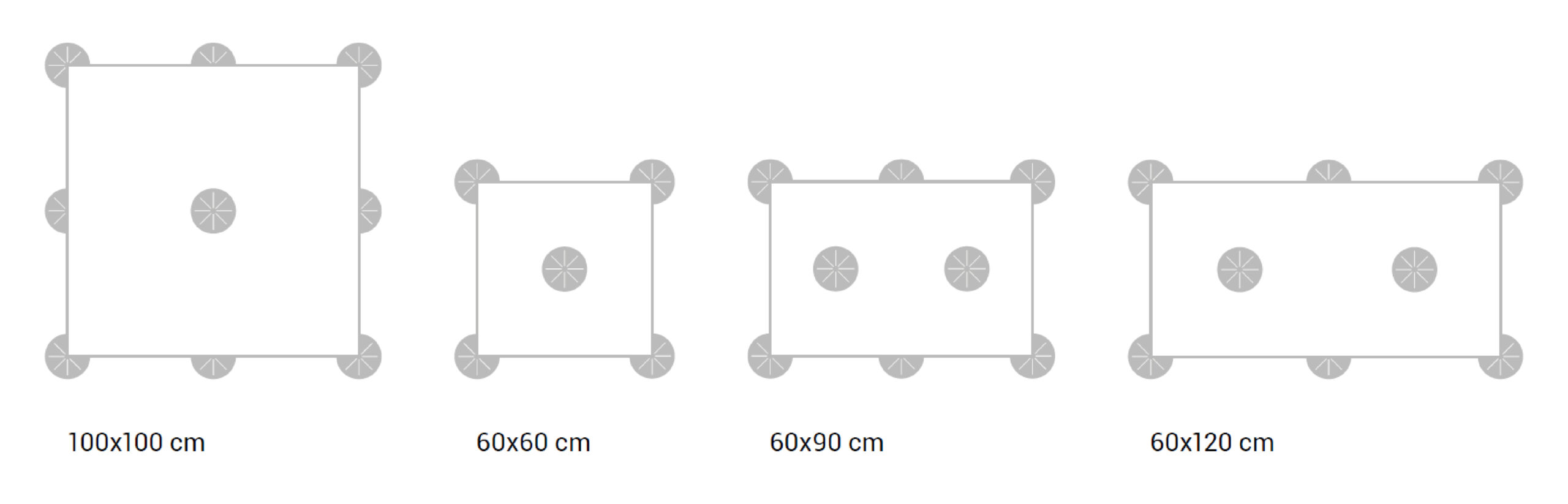 Colocación mínima recomendada de plots según formato ( Soportes de pavimento elevado )